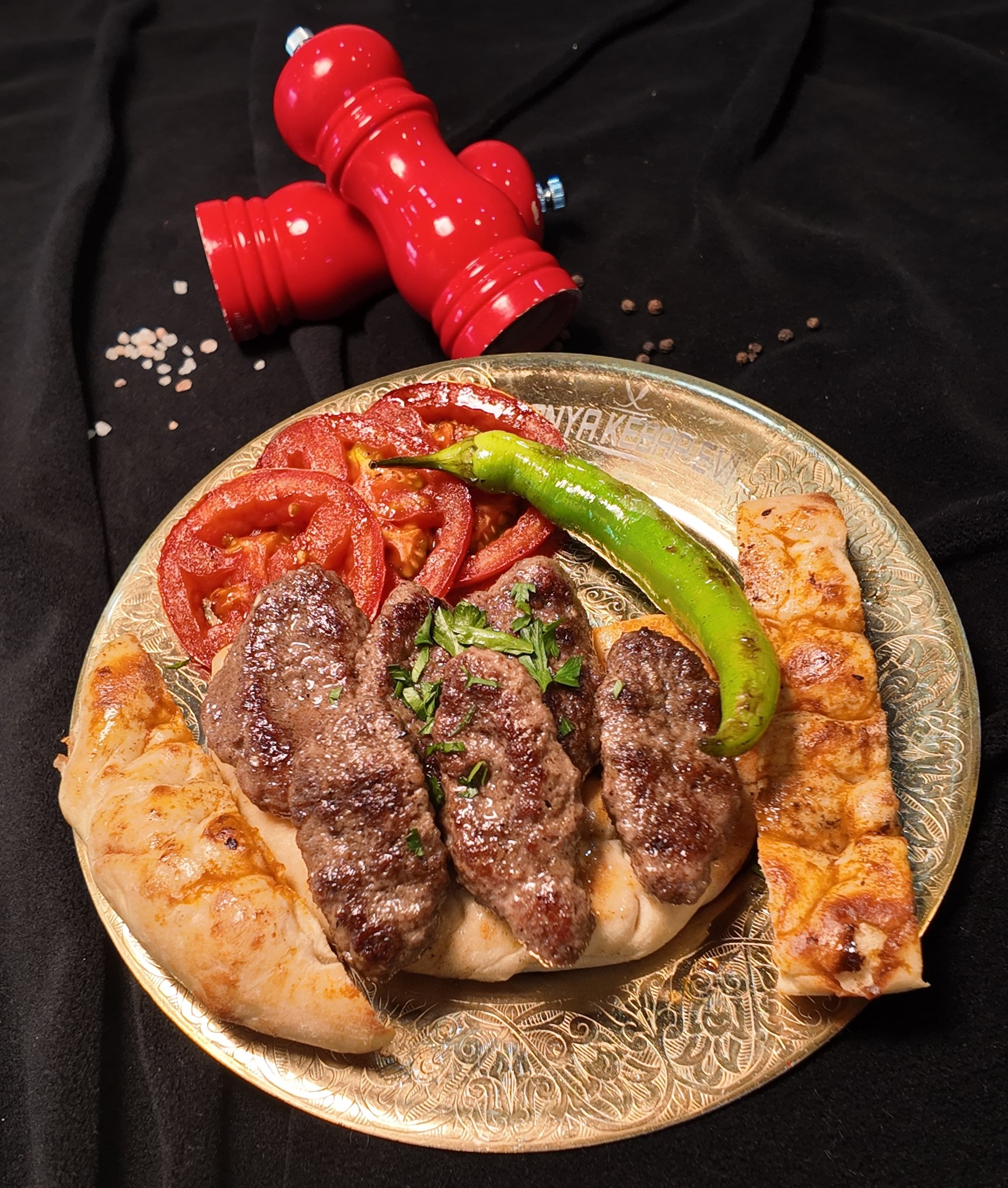Güneydoğu mutfağının iki klasiği: Adana acı ve baharatlı, Urfa sade ve yumuşak dokusuyla taş ızgarada ustalıkla pişirilir. Közlü patlıcan ile sunulur.