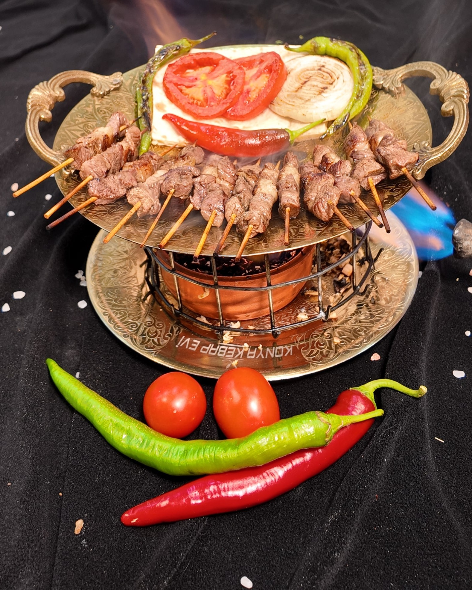 Yöresel mutfağın gözdesi: Köz patlıcan yatağında sunulan yumuşacık et; sıcak, dumanlı ve eşsiz aromasıyla damakta iz bırakır.