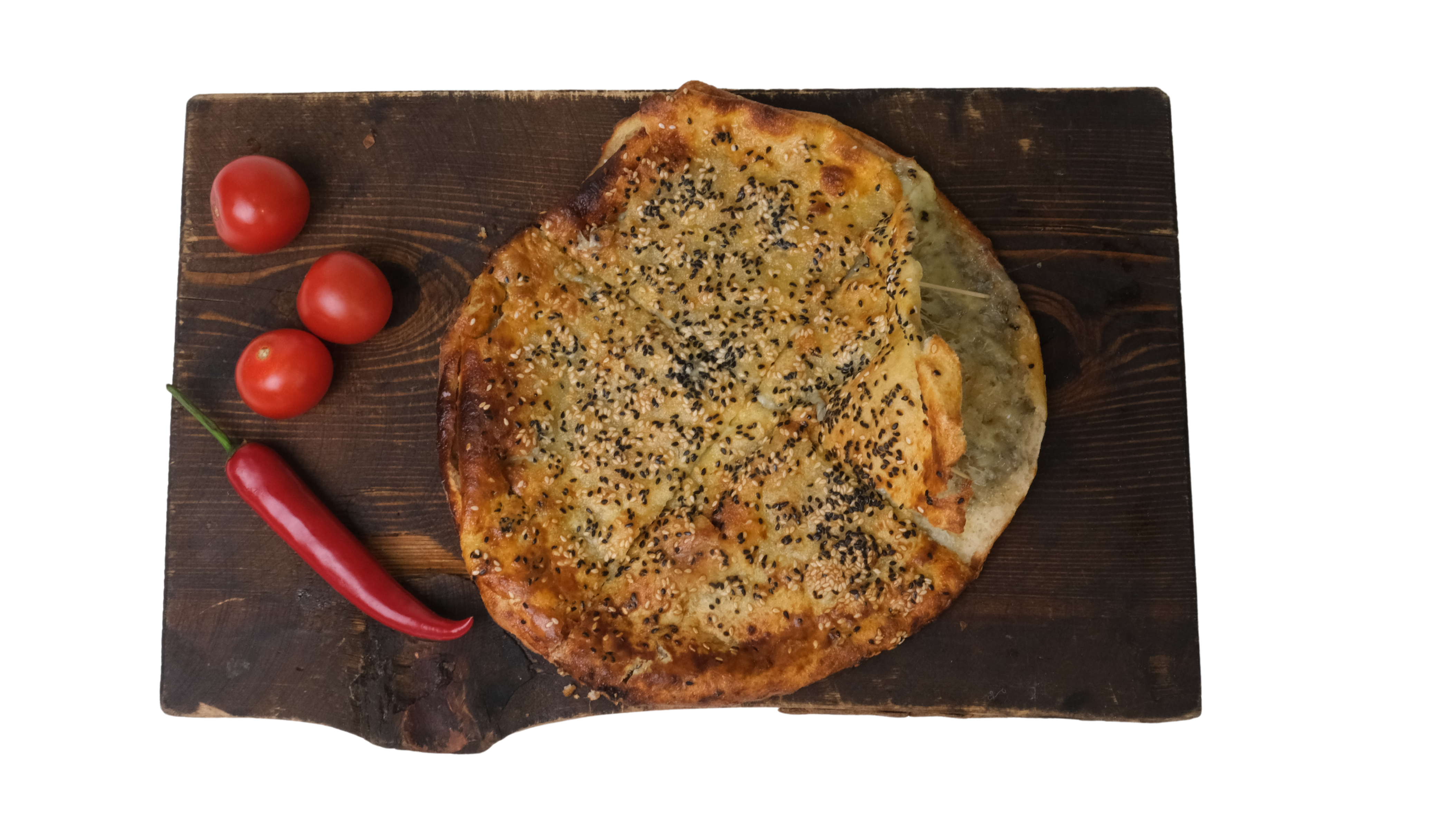 Anadolu otlu pide geleneğinin taş fırın yorumu; ince hamur üzerine serpiştirilen bol kekikle aromatik, hafif ve lezzetli bir seçenek sunar.
